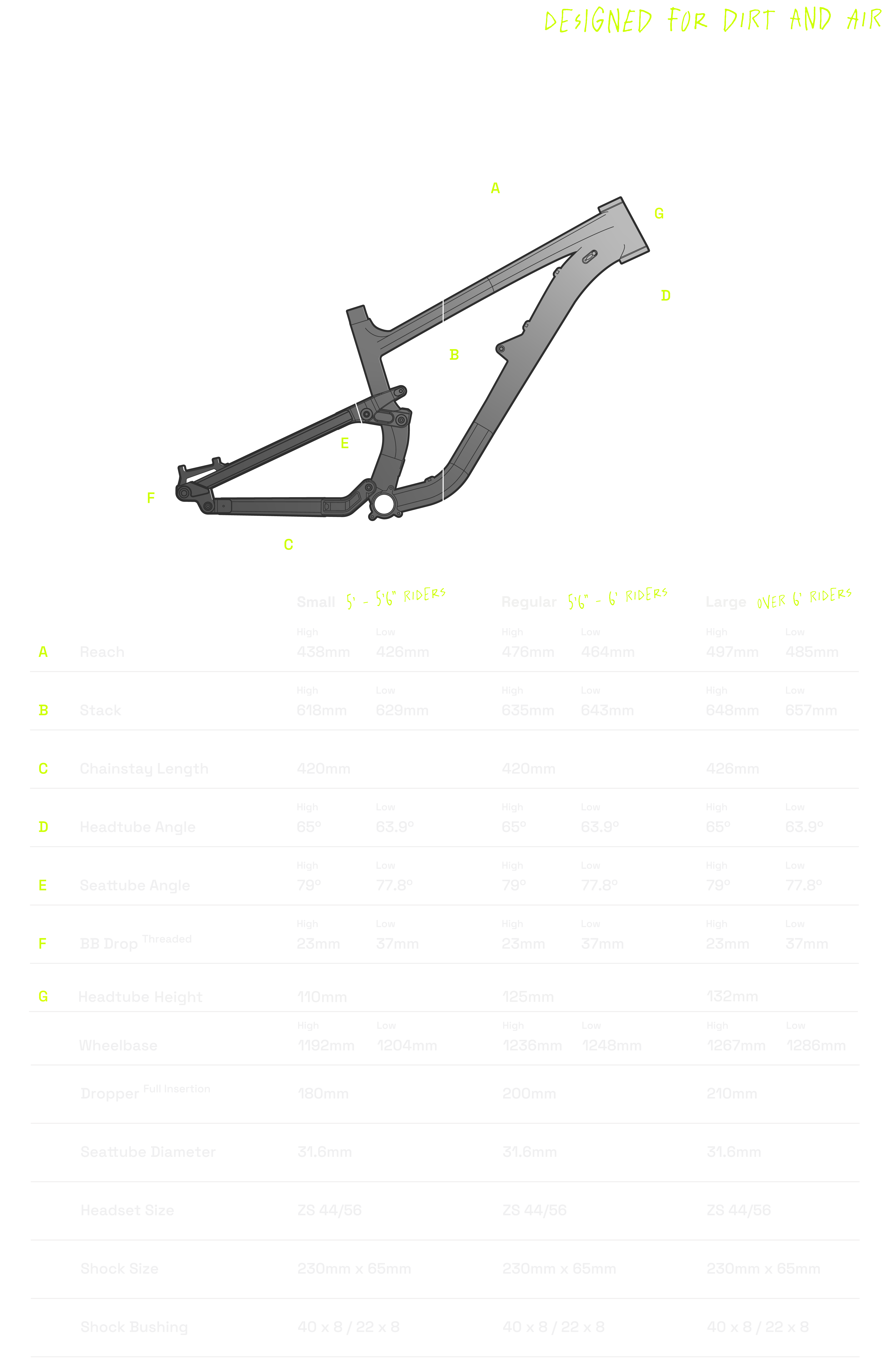 With our Lift Technology, the 420/426 chainstays aren’t the only reason you will be manualing with ease; Lift Suspension Characteristics were implemented for everything from flat-drop-backflips, to simply lifting your front wheel over a log with ease.